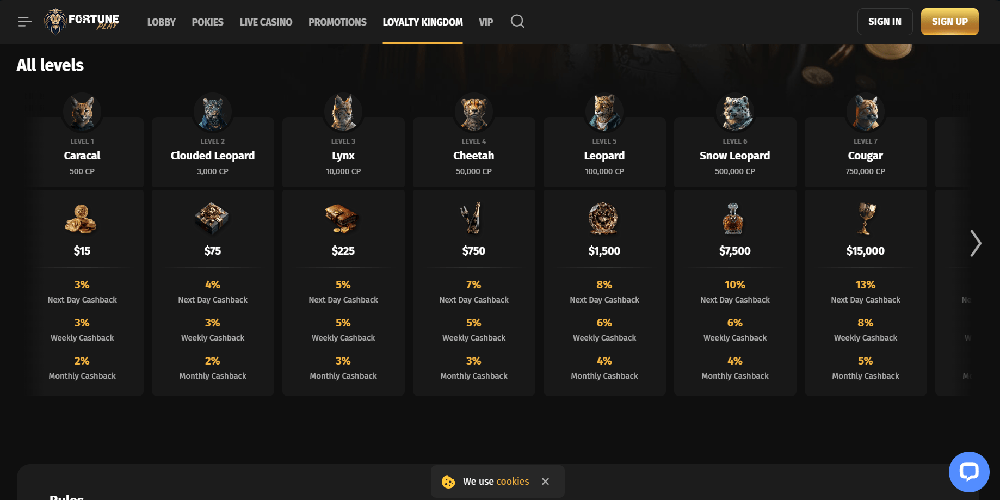 Mehr als 80 Entwickler, darunter einige der größten Namen der Branche, sind Teil des Teams von FortunePlay. Hier finden Sie die Produkte einer Reihe bekannter Gaming-Unternehmen, darunter BigTimeGaming, Evolution, Netent, Pragmatic Play, Red Tiger, Thunderkick, Betsoft, IronDogStudio und Yggdrasil. Für eine größere Auswahl sind im Casino auch Spiele von kleineren, aber nicht weniger wettbewerbsfähigen Anbietern wie Evoplay, Gamzix, SmartSoft, Turbo Games, Endorphina, Wazdan und anderen erhältlich.