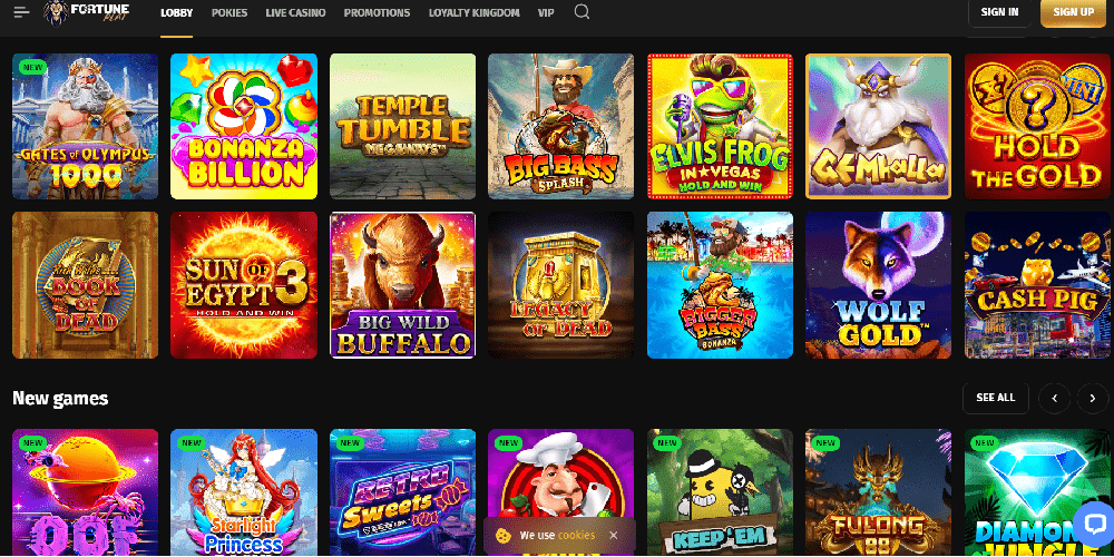 Jedes Genre ist in der erstklassigen Spielebibliothek von FortunePlay gut vertreten, die sowohl klassische als auch neu veröffentlichte Titel umfasst. Zu den vielen verfügbaren Spielautomaten gehören: Book of Dead, Wish Granted, Razor Shark, Wanted Dead or a Wild, Gates of Olympus und viele mehr.