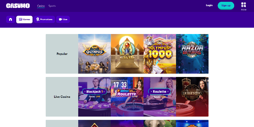 At this point, Casumo's focus is only on casino games. Not a single sports betting offer is available.