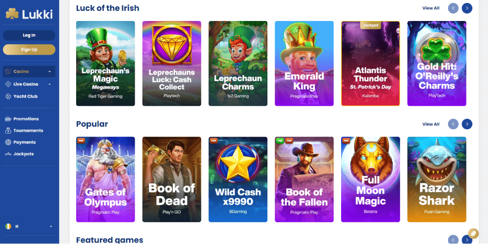 Visit Lukki for hours of pleasure and entertainment guaranteed by their astounding array of gaming products. Slots like Jackpot Mines, Detective Donut, Oink Bankin, Fire Blaze: Sky Queen Megaways, Jackpot Fortune, and countless more are available for perusal among the hundreds of titles available.