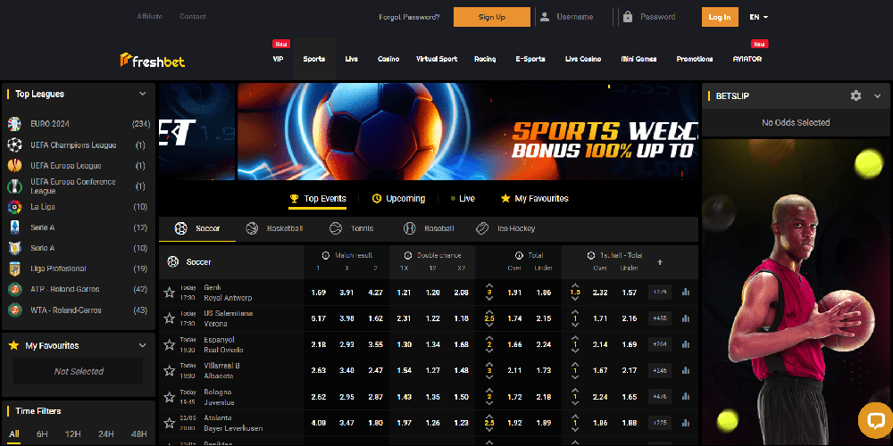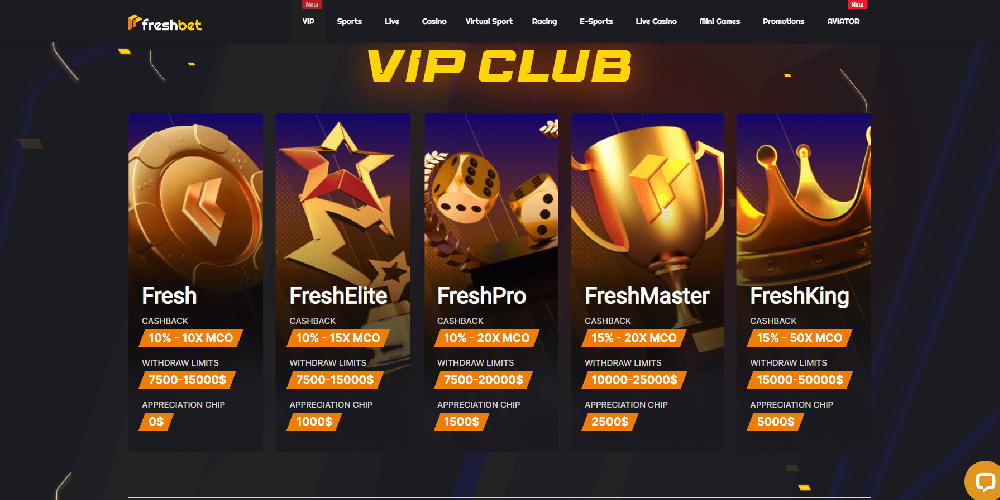 Starting in 2021, users will have access to a plethora of gaming options at FreshBet, a completely crypto online casino. Hundreds of odds on more than 20 sports are available at the sportsbook, which is part of an enormous library with over 3300 goods including slots, several poker, blackjack, and roulette variants, and more. A huge, interactive banner advertising the many gaming sections and current promotions is part of the website's contemporary, streamlined design that features high-quality visuals.