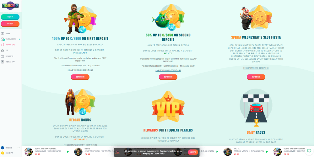 Betsoft, Big Time Gaming, ELK Studios, Evolution, Netent, Play'N Go, Microgaming, and Thunderkick are just a few of the well-known gaming software firms that Spinia works with. Endorphina, Hacksaw, Spribe, Wazdan, and Gamomat are just a few of the smaller studios whose items you may find here.